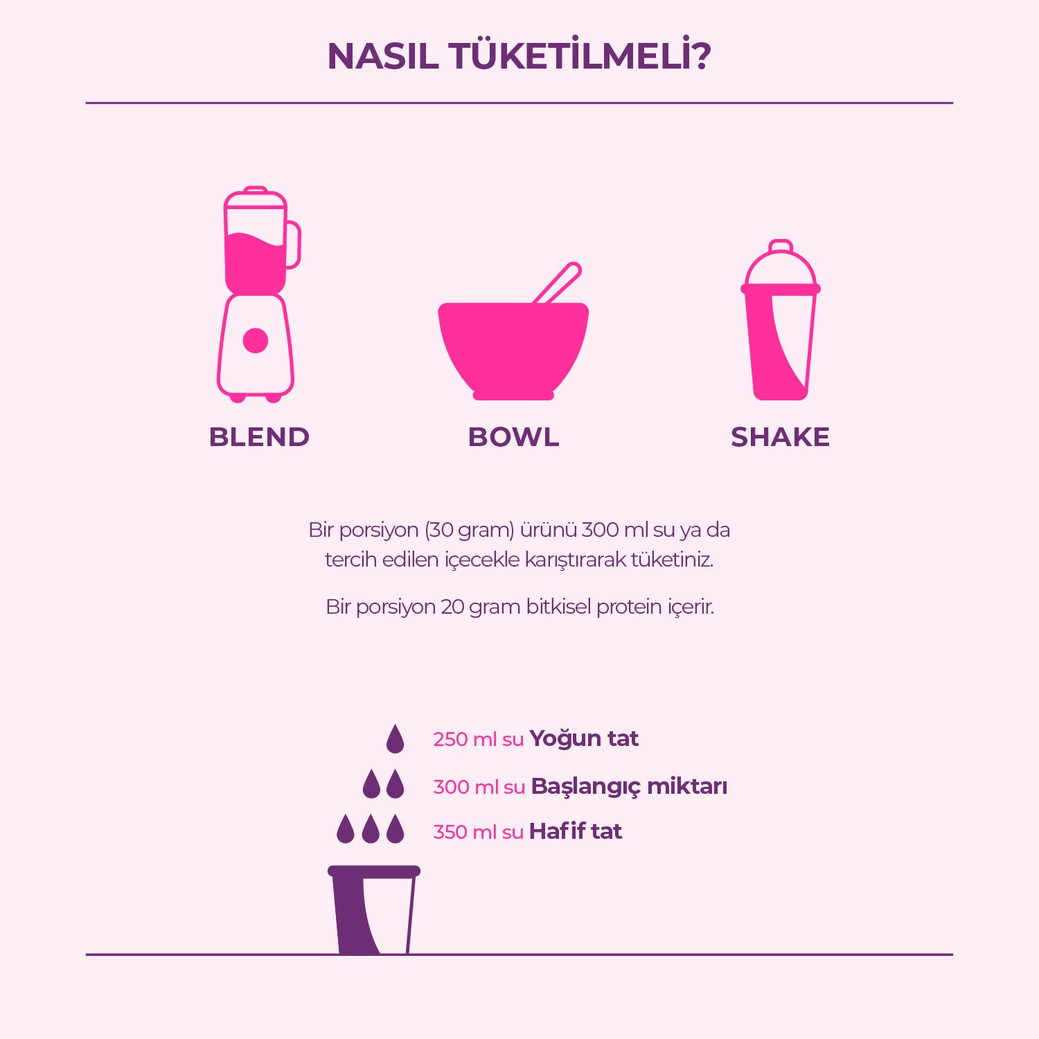 Kahvaltıda, ara öğün olarak, antrenman öncesi (egzersizden 30-60 dakika önce) veya antrenman sonrası tüketilebilir. Shaker kullanarak iyice çalkalayın ve anında tüketin.